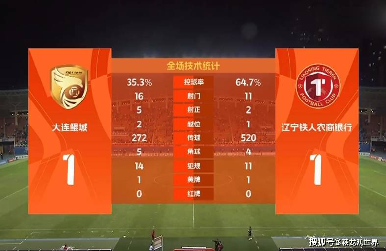 丢球之后的铁人如梦方醒,姆本扎和邦本宜裕确实创造了一些机会,但也浪射多次。直到第56分钟,费利佩传中,姆本扎头球才攻破鲲城门。第68分钟穆谢奎插上射门被出击挡出。最终比分定格在1-1。全场比赛鲲城和铁人的控球率35.3%:64.7%;射门16:11。看似铁人数据更好,但在中后场无效倒脚过多,刷控球率有何用?