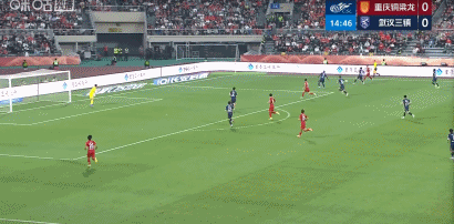 第23分钟,肯帕努送助攻,张志雄门前抢点头球得分,铜梁龙将比分扩大为2-0领先!