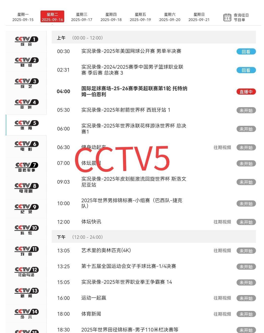 足球直播- NBA直播- 世界杯专业赛事超清Live重要赛事!9月16号晚7点半CCTV5、CCTV5+5套精彩节目表
