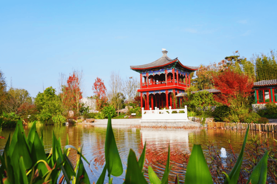 红枫在枝头摇曳生姿,与秋风共舞。踏入特色展园,如同翻开画卷,能够领略到来自不同地区的园林文化的独特魅力。