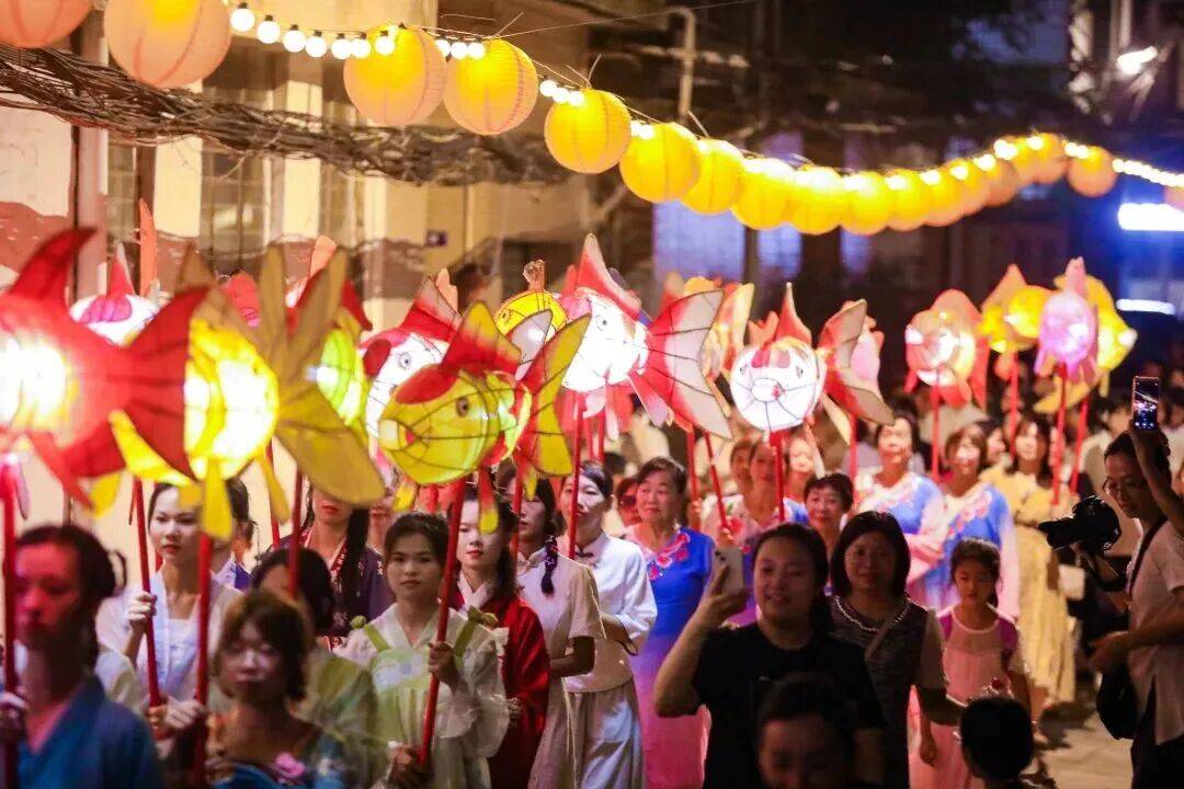 10月5日—7日,华灯初上,古城内还有民俗队伍携鱼灯,板凳龙盛大巡游。市民游客也可以加入巡游队伍,与鱼龙灯影并肩而行,重拾古人“赏月游街”的浪漫情怀。