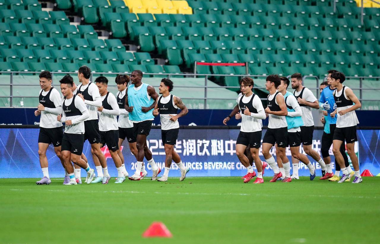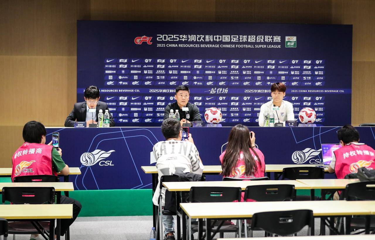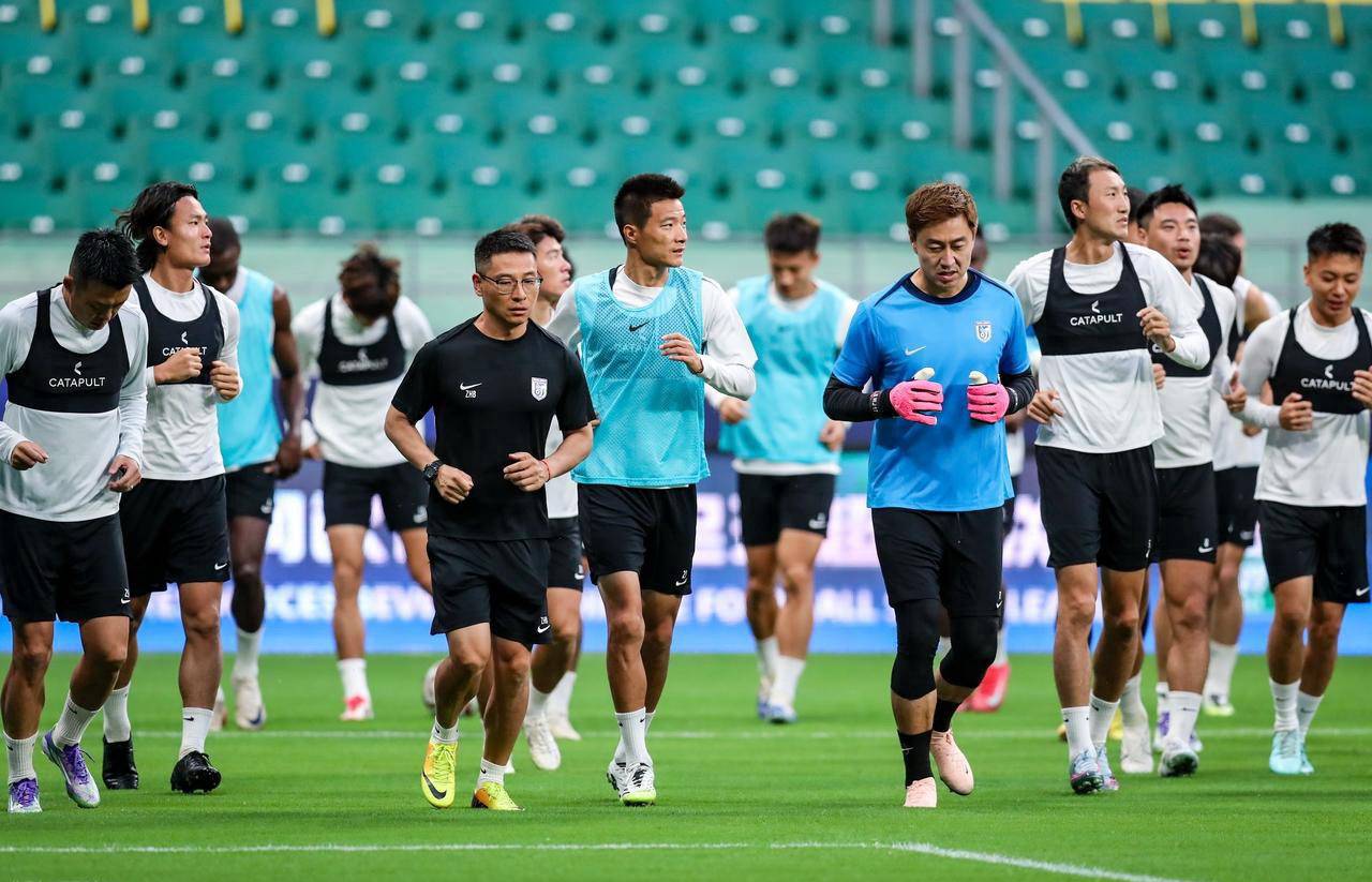 赛前一天,大连英博海发将士在工体进行例行的踩场训练,主帅李国旭带着U22国足小将毛伟杰出席了赛前新闻发布会。